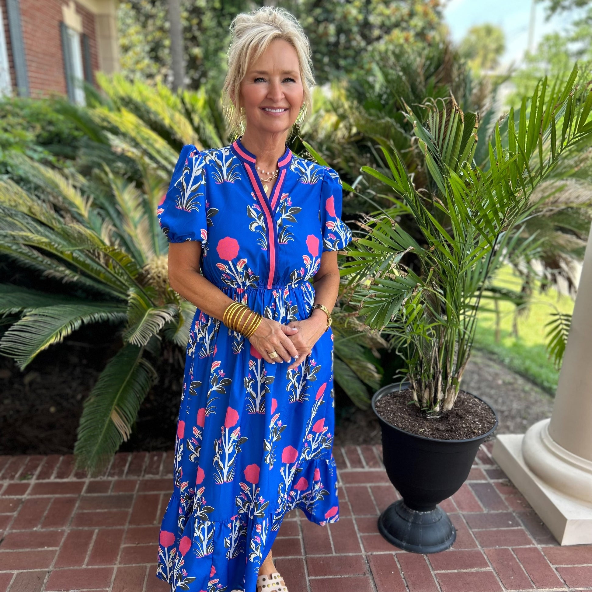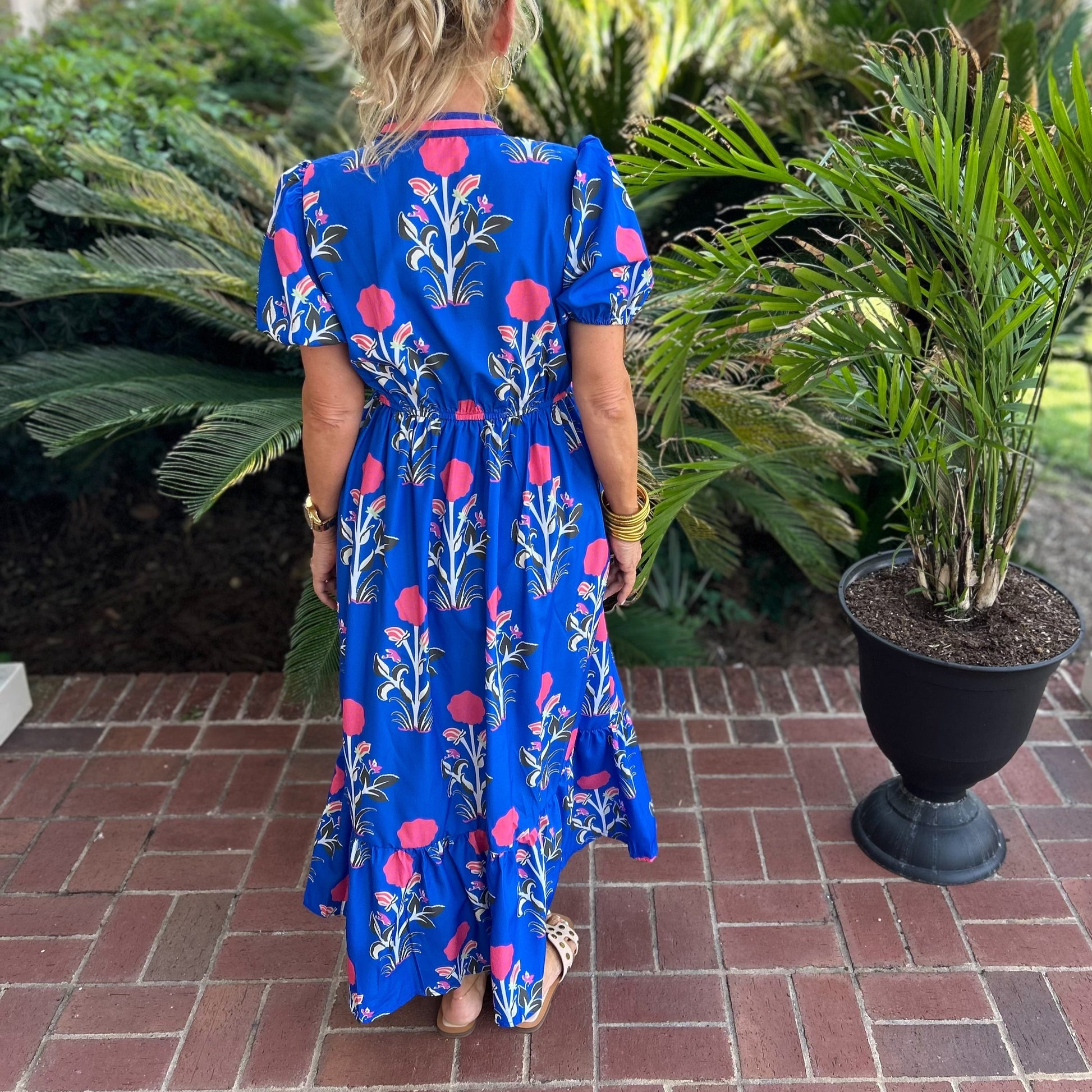 The Audrey Dress in Blue is a must-have for any fashion-forward individual. This elegant dress features striking striped contrast puff sleeves and charming ruffle tiers, adding a touch of femininity to your wardrobe. Crafted with high-quality materials, it is both comfortable and stylish. Elevate your look with this versatile dress.