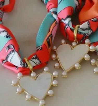 Elevate your style with the Scarlett Heart Scarf Necklace in Orange Mint. Featuring a heart pendant framed with pearls, this unique design exudes southern charm. Perfect for adding a fun touch to any outfit, this necklace is a must-have for any fashion-forward individual.