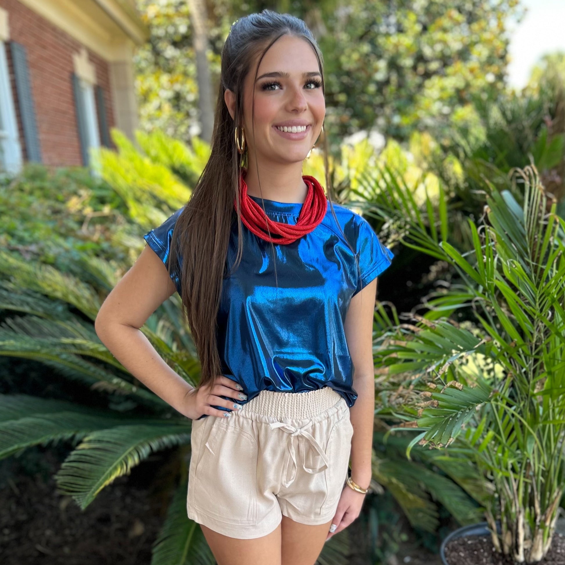 Paired with the Gia Glossy Top and the Rope Statement Necklace in Red.